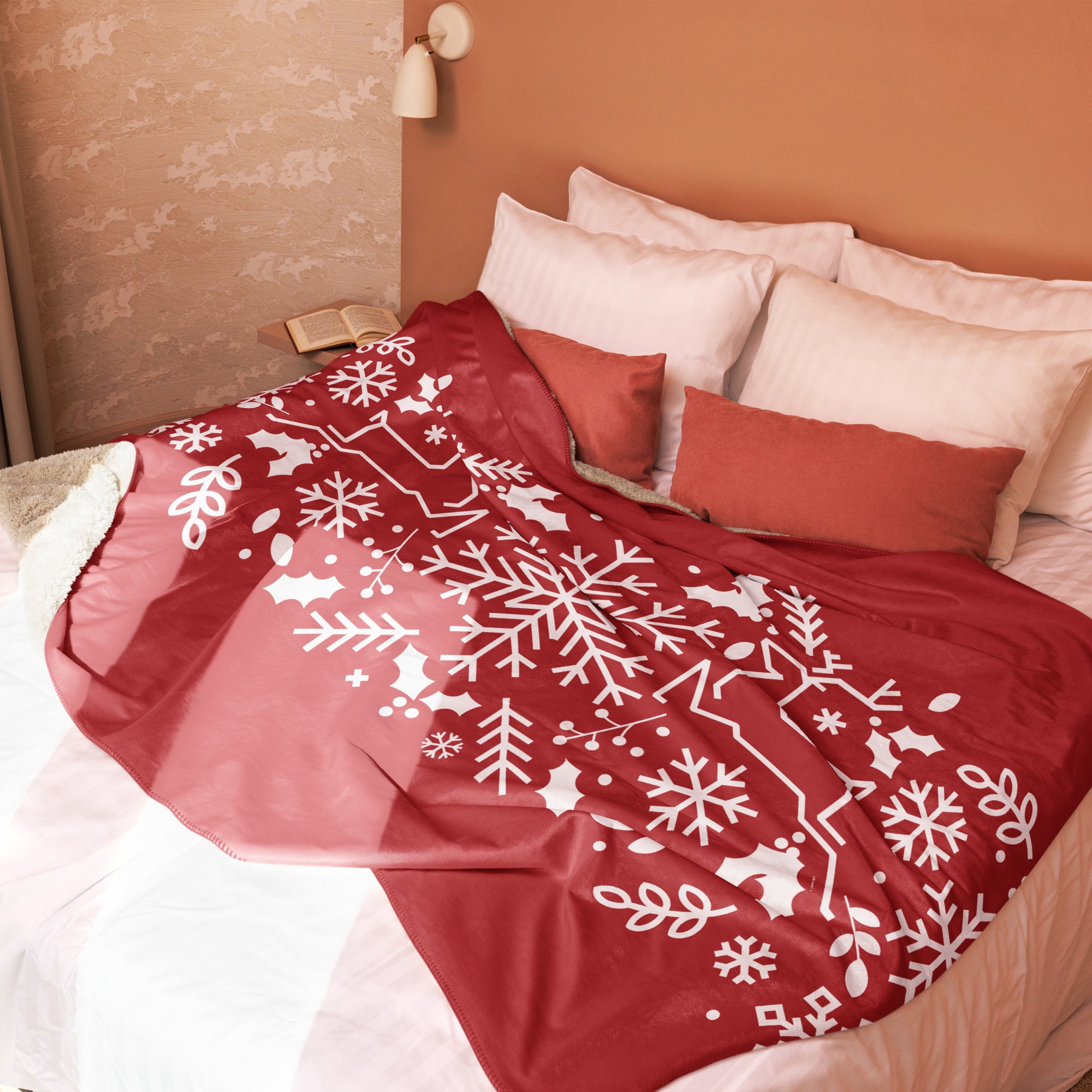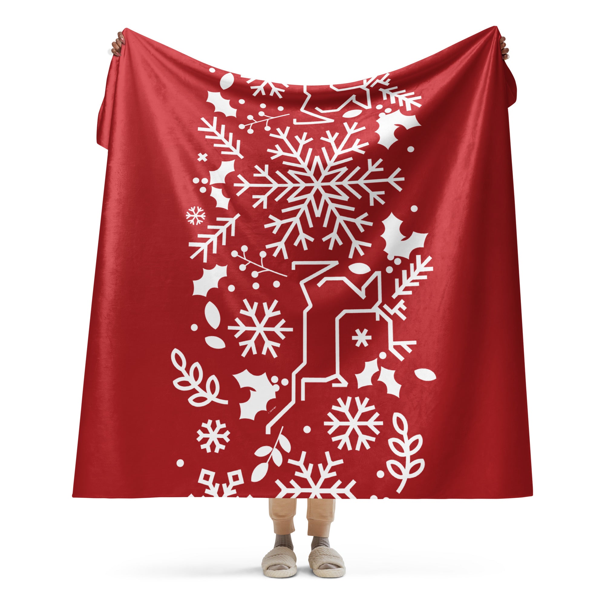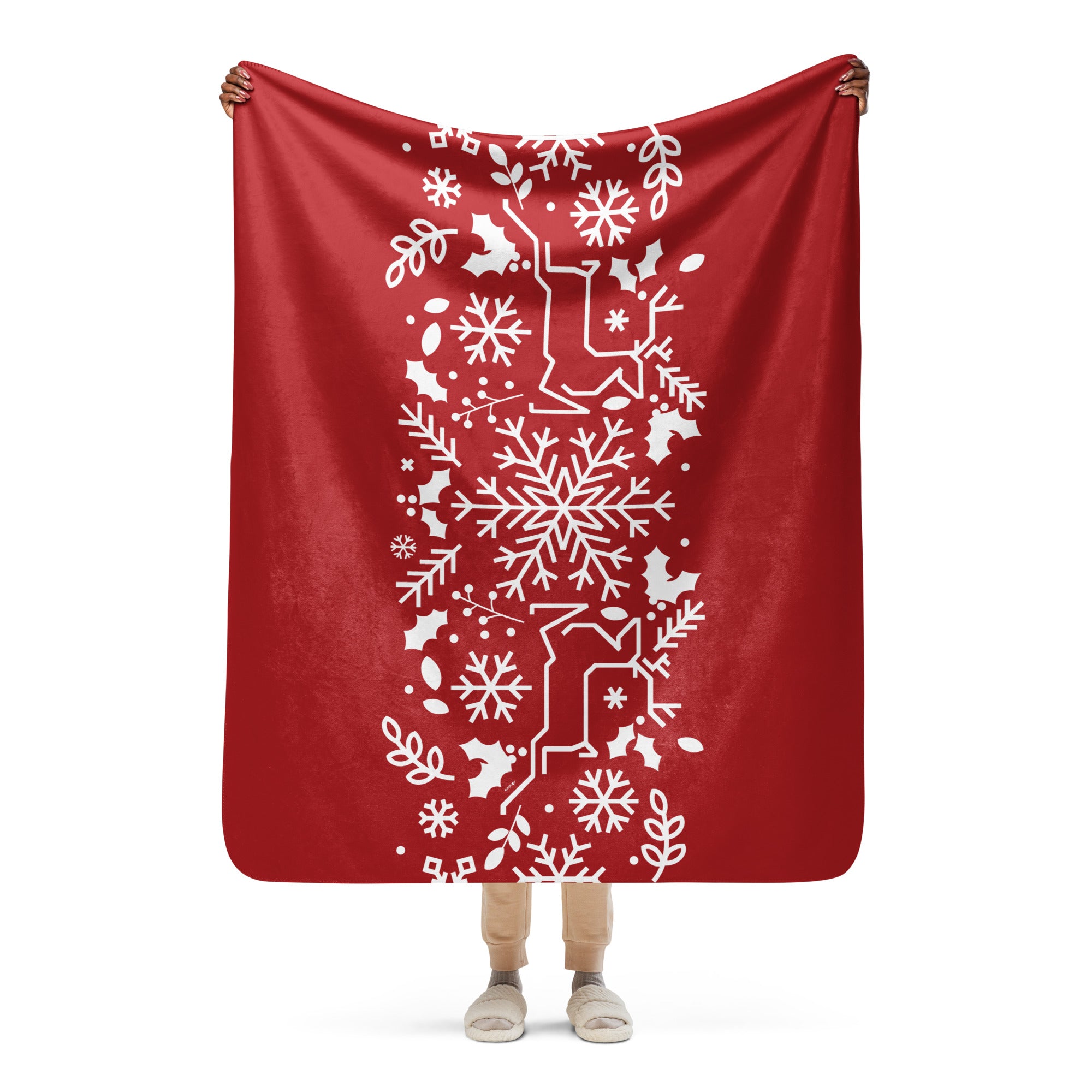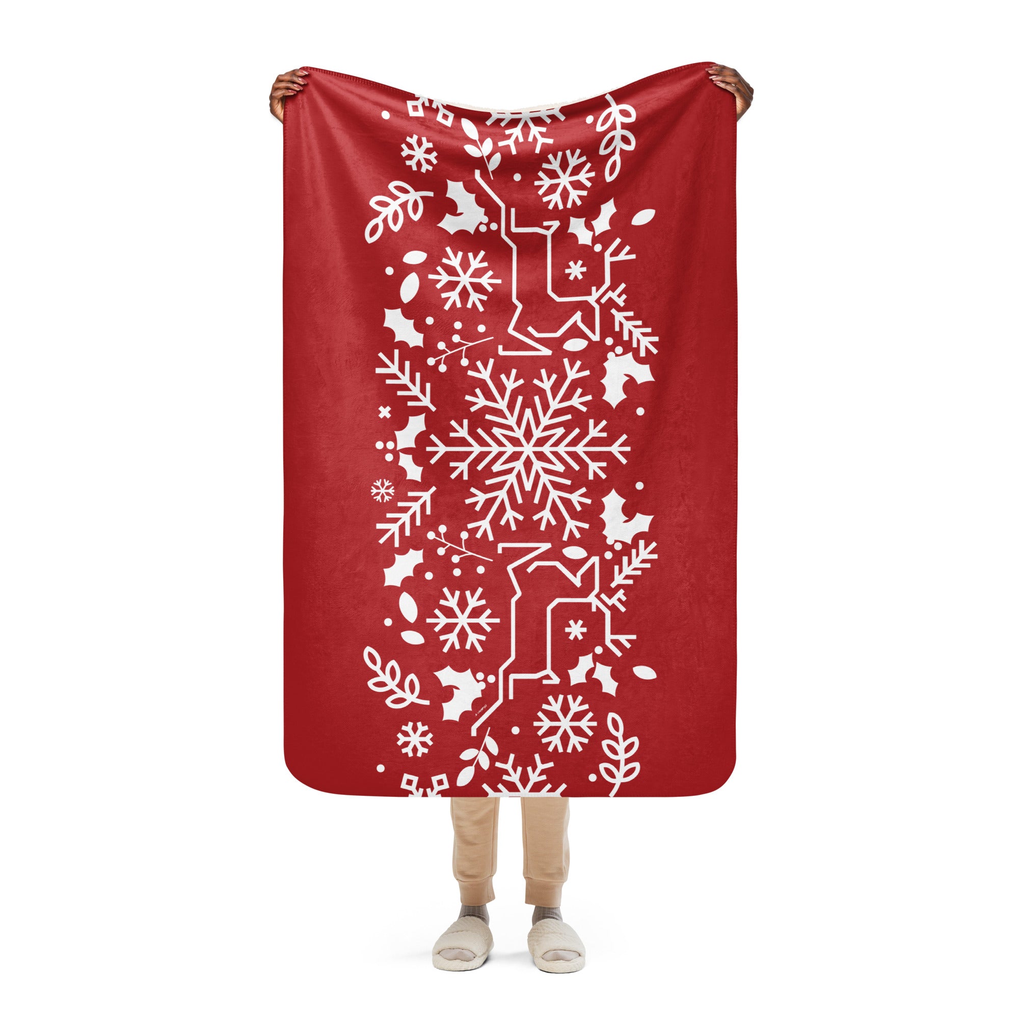 Bring holiday spirit into your home or surprise someone special with this festive sherpa blanket, designed to keep you warm and stylish all winter long.